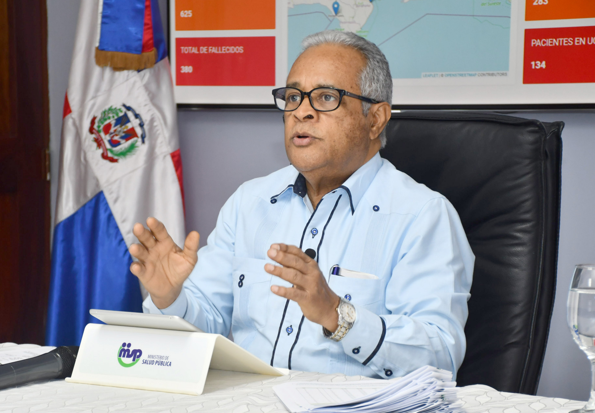 Ministro de Salud Pública, Rafael Sánchez Cárdenas, al ofrecer detalles del boletín especial número 50 de la Dirección General de Epidemiología del Ministerio de Salud Pública, sobre la situación de la enfermedad en el país.
