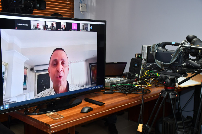 Periodistas participantes en la webconferencia ofrecida por el ministro de Salud Pública, Rafael Sánchez Cárdenas, quien respondió preguntas sobre actual situación de coronavirus (COVID-19), en nuestro país.