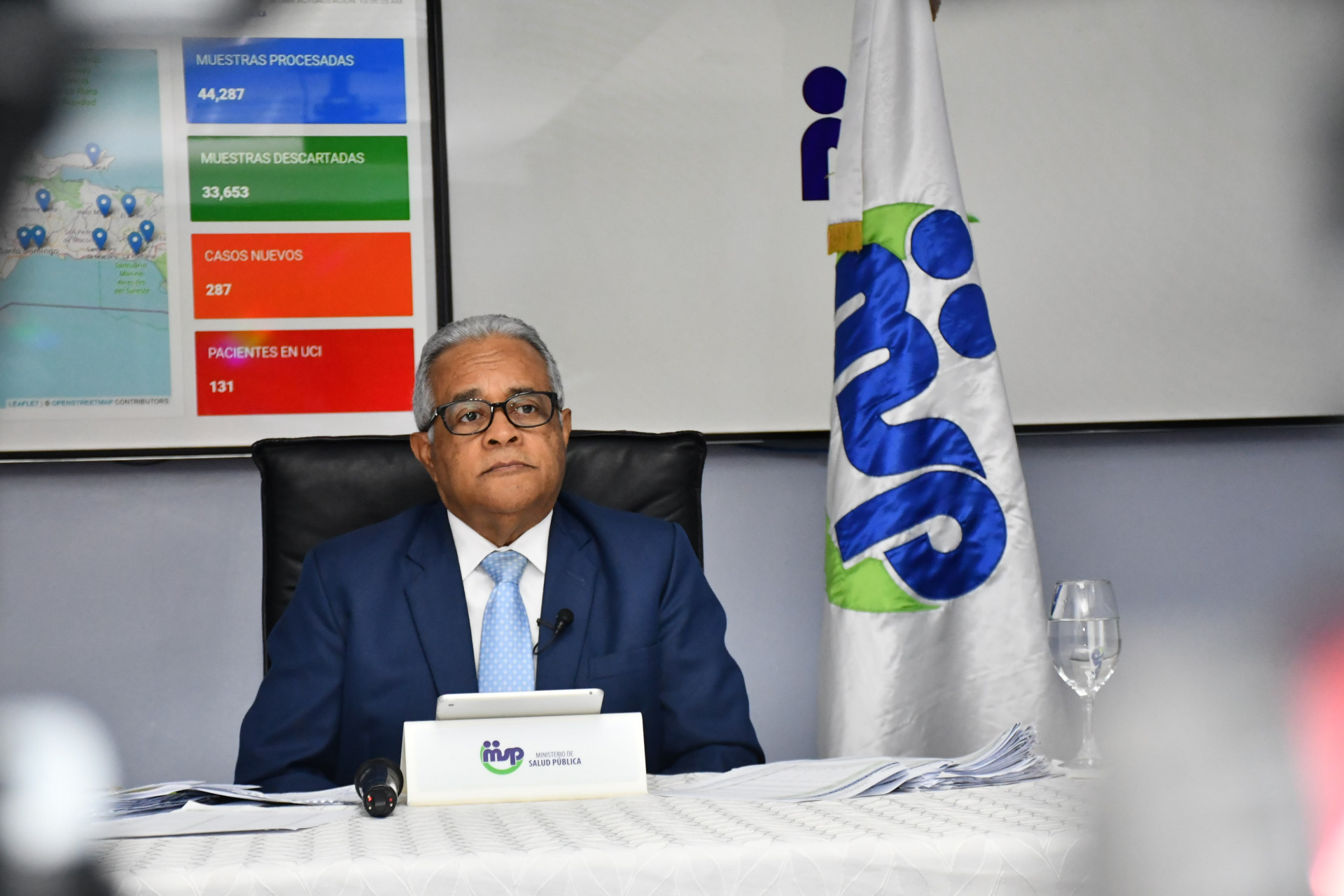 Ministro de Salud Pública, Rafael Sánchez Cárdenas, al ofrecer detalles del boletín especial número 53 de la Dirección General de Epidemiología del Ministerio de Salud Pública, sobre la situación de la enfermedad en el país.