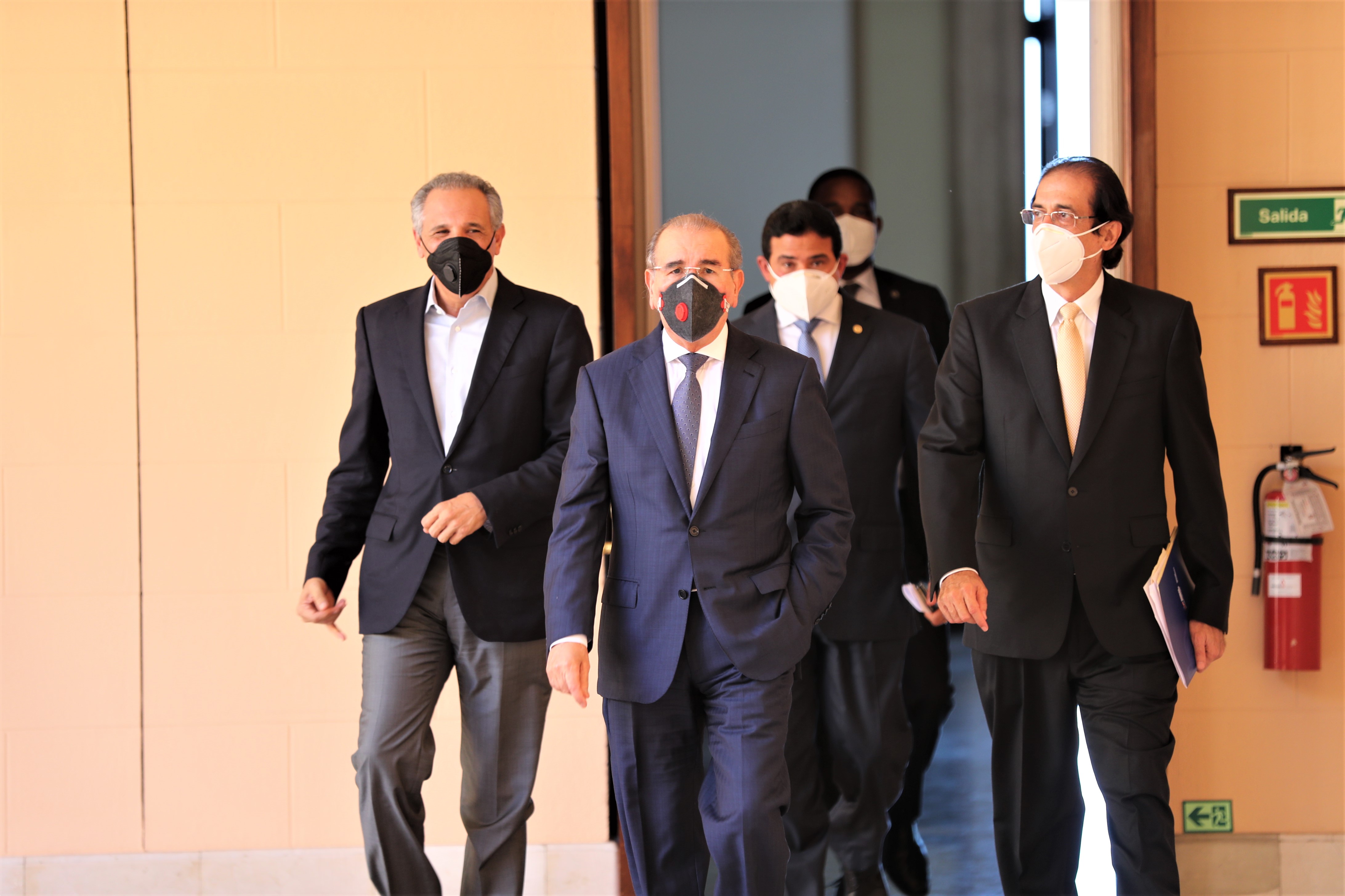 El presidente de la República estuvo acompañado de Gustavo Montalvo, ministro de la Presidencia; José Ramón Peralta, ministro Administrativo de la Presidencia; y Juan Ariel Jiménez, ministro de Economía, Planificación y Desarrollo.