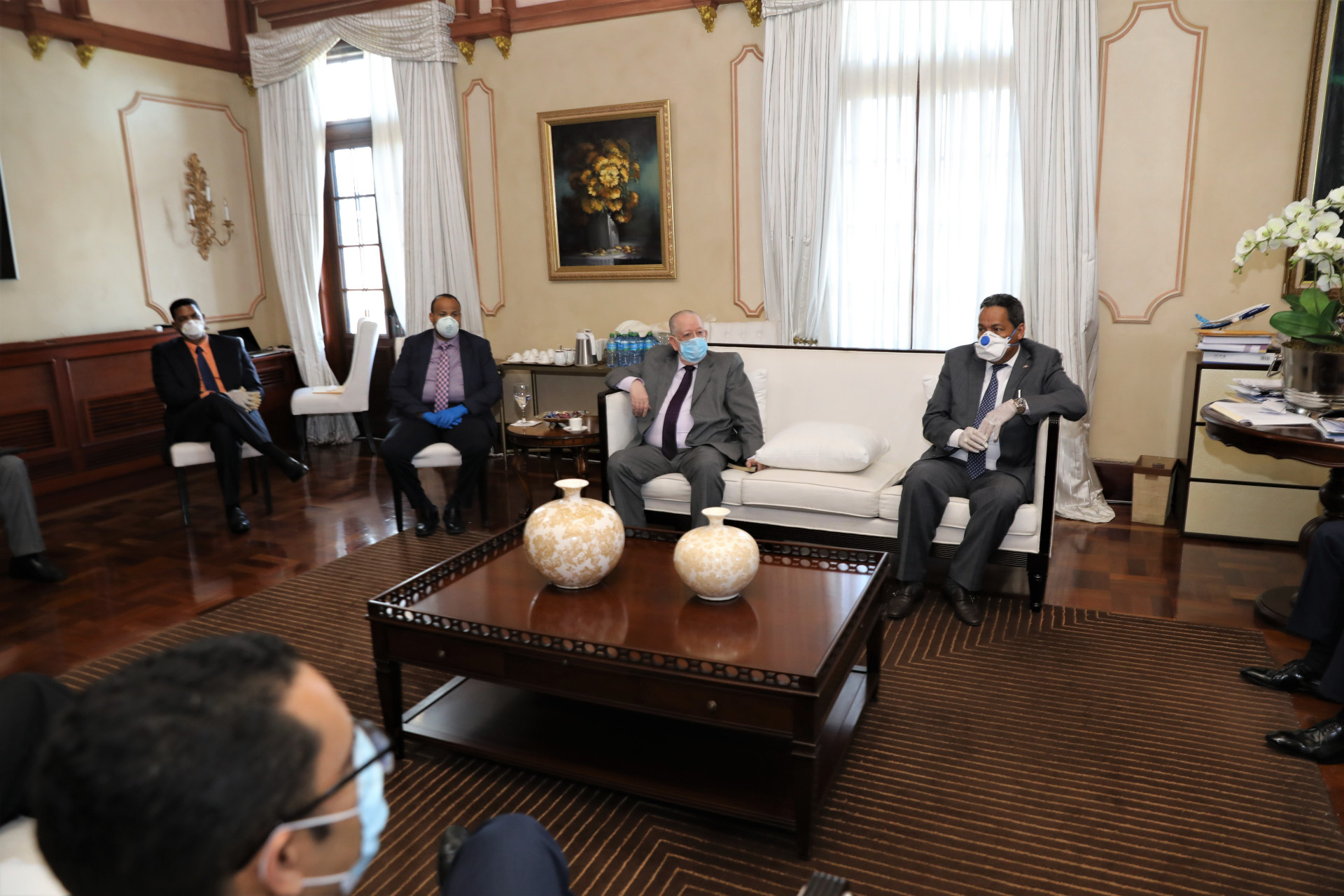El presidente Danilo Medina durante encuentro con representantes de la Iglesia Evangélica, como parte de su jornada de consultas a distintos sectores de la vida nacional de cara al coronavirus (COVID-19).