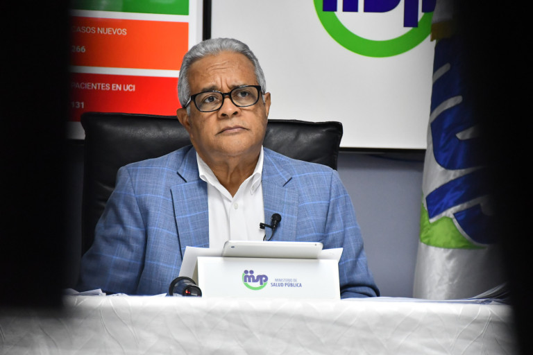 Ministro de Salud Pública, Rafael Sánchez Cárdenas, al ofrecer detalles del boletín especial número 54 de la Dirección General de Epidemiología del Ministerio de Salud Pública, sobre la situación de la pandemia en el país.
