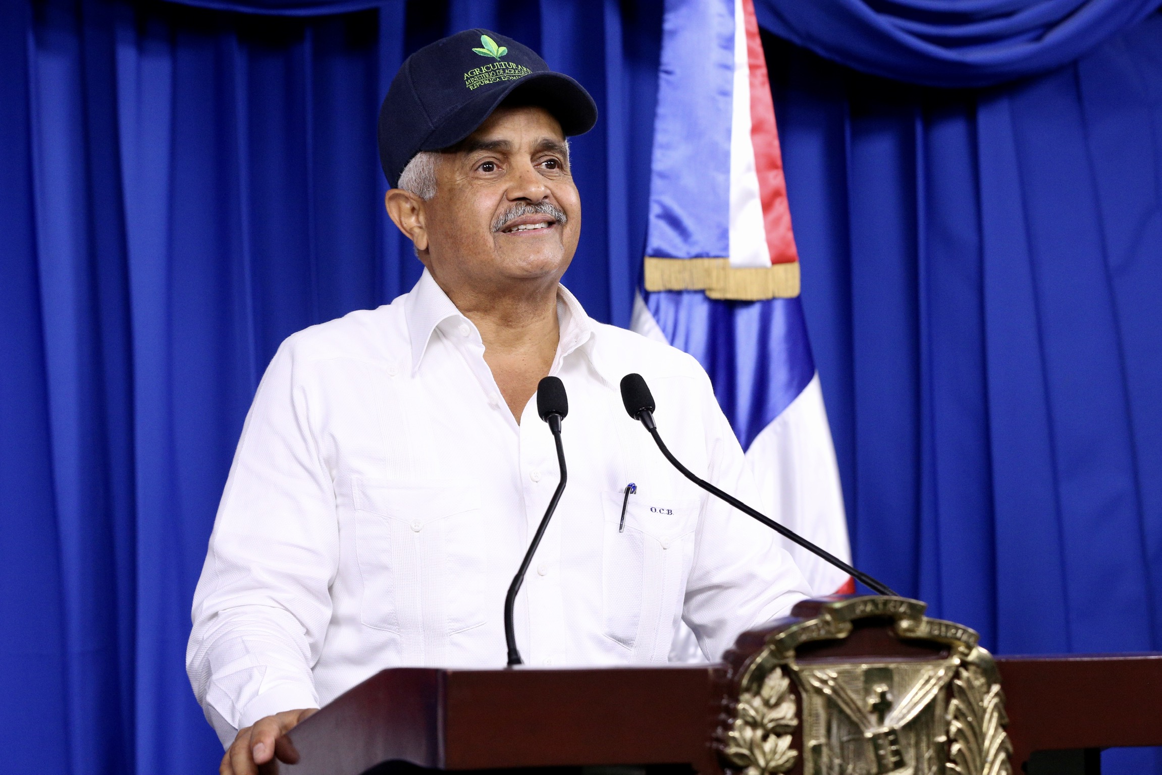 Ministro de Agricultura, Osmar Benítez, durante rueda de prensa en el Salón Orlando Martínez del Palacio Nacional, luego de sostener su acostumbrada reunión con el presidente Danilo Medina.