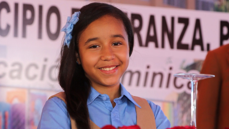La estudiante de octavo grado, Carolyn Hernández, quien agradeció al Gobierno la construcción de los planteles escolares.