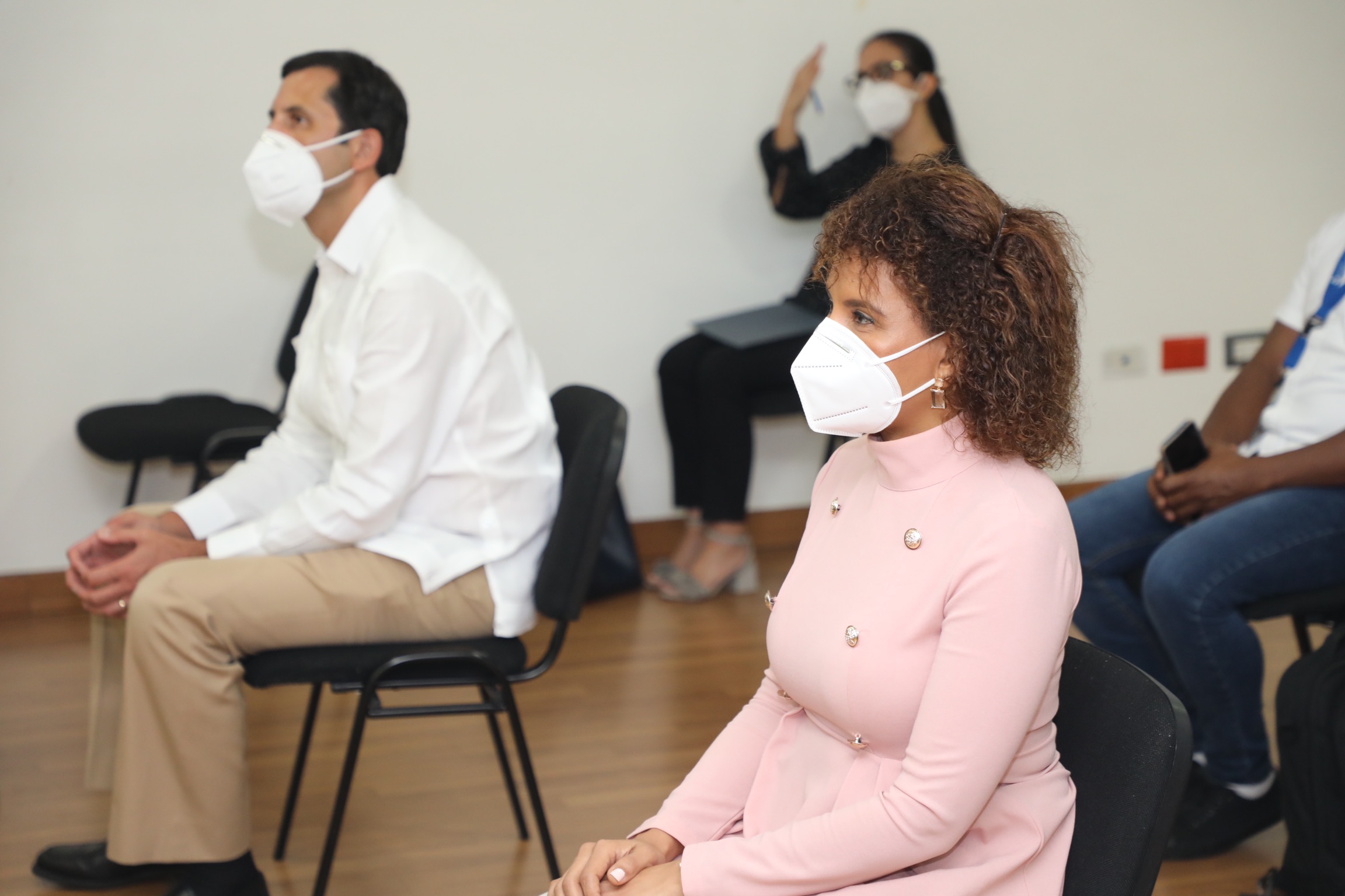Acto de entrega de las pruebas y equipos, encabezado por Juan Ariel Jiménez, ministro del MEPyD, por el Gobierno dominicano; y por César Dargam, vicepresidente ejecutivo del CONEP, por la alianza de solidaridad empresarial Sanar una Nación.