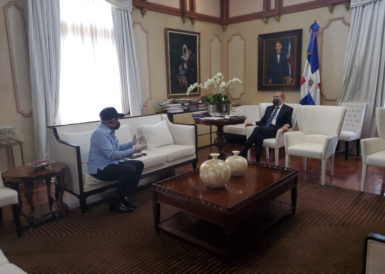 Presidente Danilo Medina durante reunión con el ministro de Agricultura, Osmar Benítez, en el Salón Privado del Palacio Nacional.