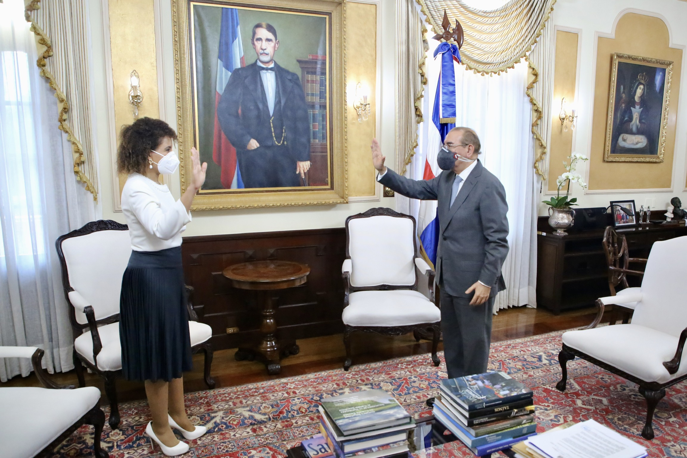 El presidente Danilo Medina durante breve ceremonia de juramentación a Zoraima Cuello, directora ejecutiva del Consejo Nacional de Competitividad, que tuvo lugar en el despacho presidencial del Palacio Nacional.