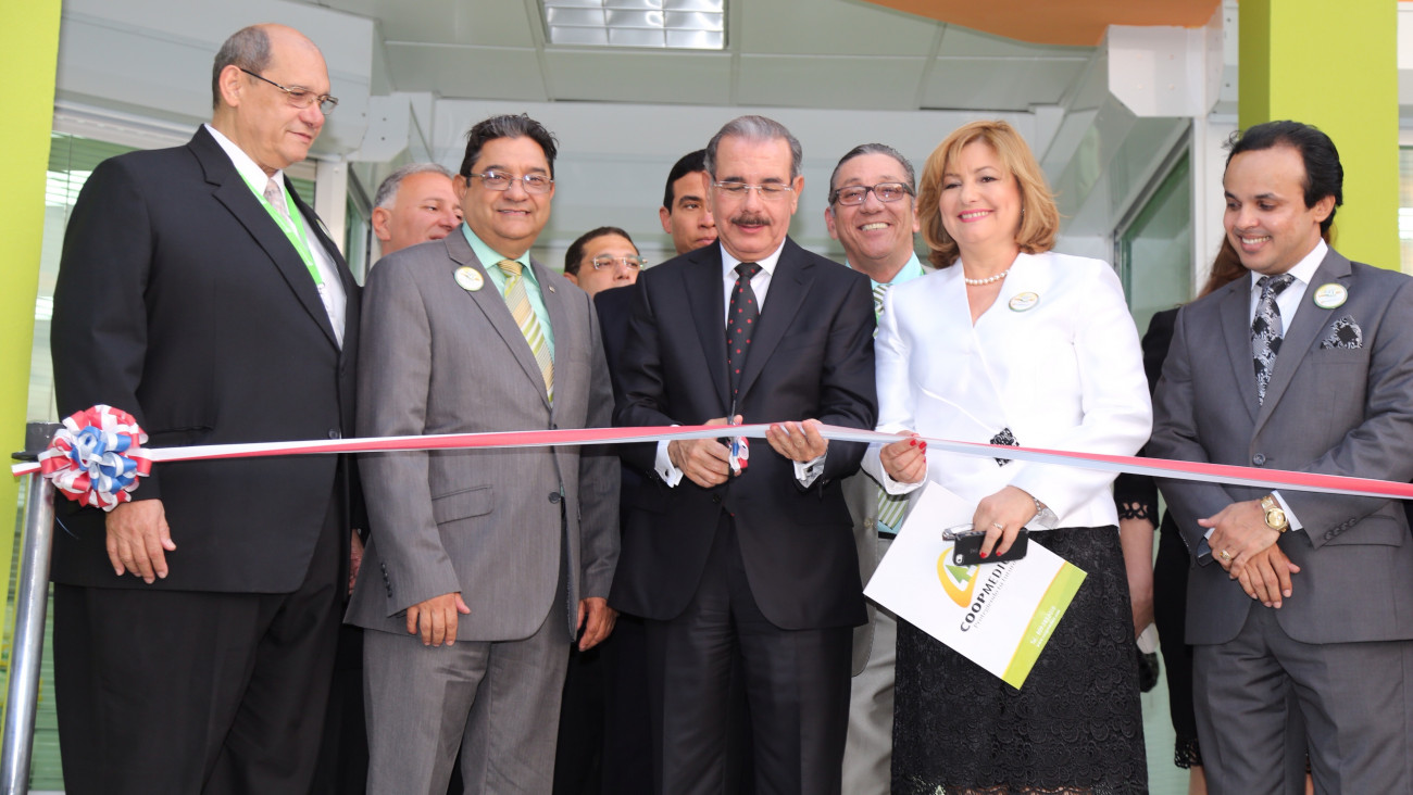 Presidente Medina, acompañado de los ejecutivos de la Cooperativa, cortó la cinta simbólica para dejar inaugurada la obra y luego realizaron un recorrido por las instalaciones. Acompañan al mandatario, Francisco Estepan, Francisco Oscar Espino Torres, Daysi Rosario, Williams Medrano, el ministro de Salud Pública, Freddy Hidalgo; la gobernadora de Santiago, Aura Toribio; el alcalde municipal, Gilberto Serulle, entre otros.