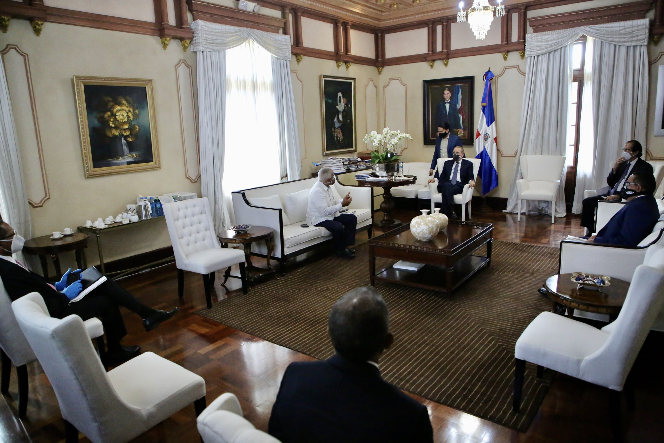 Durante la reunión, el jefe de Estado estuvo acompañado del ministro de la Presidencia, Gustavo Montalvo; del director general del IAD, Emilio Toribio Olivo; del director del Fondo Especial para el Desarrollo Agropecuario (FEDA), Juan Francisco Caraballo; así como el subadministrador del Banco Agrícola, Rafael Moreno, en representación del administrador general, Carlos Segura Foster.