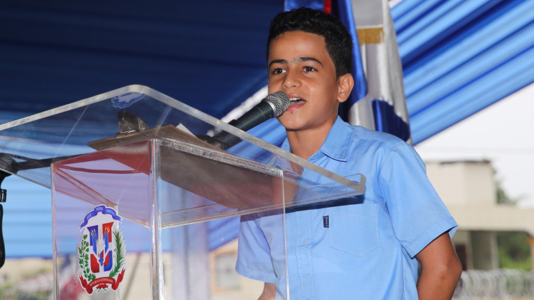 El alumno de octavo grado Dariel Miranda García, quien dio las gracias al presidente Medina por poner a su disposición un ambiente adecuado que “nos permita alcanzar las metas que como estudiantes nos proponemos y asumir con responsabilidad los nuevos retos que demanda la sociedad”.