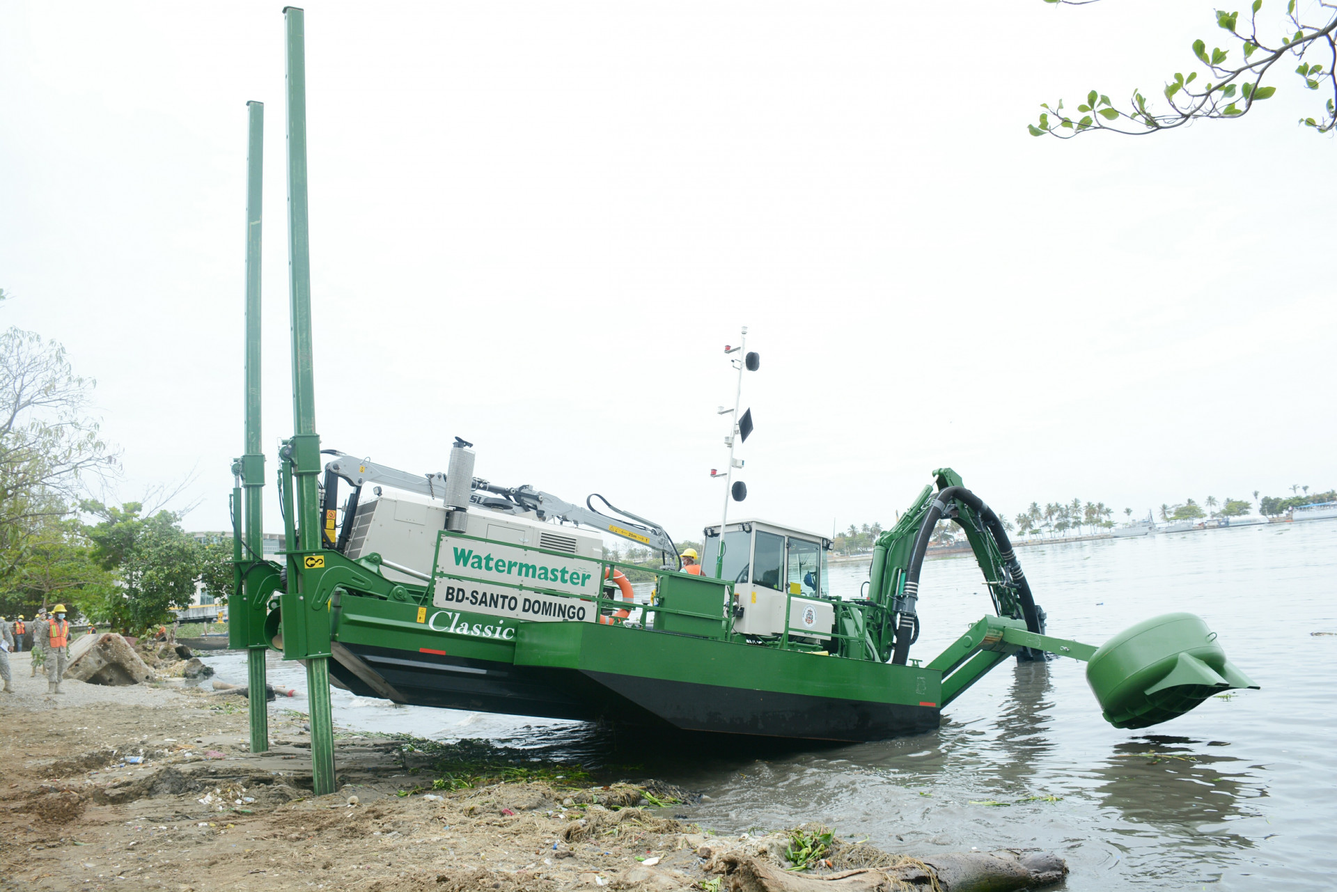 Ministro de presidencia inspeciona la Máquina WATERMASTER Para dragado y limpieza del Río Ozama
