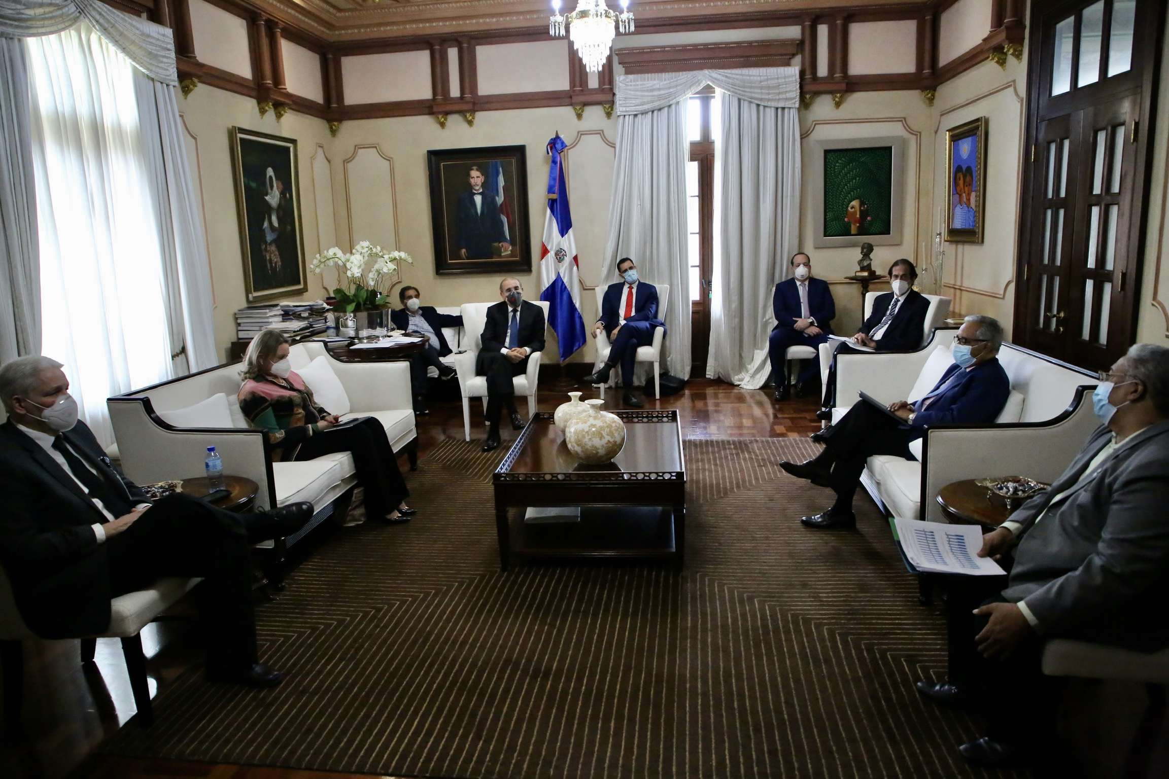 Presidente Danilo Medina durante reunión con el Comité de Emergencias y Gestión Sanitaria para el Combate del Coronavirus (COVID-19), realizada hoy en el Salón Privado del Palacio Nacional.