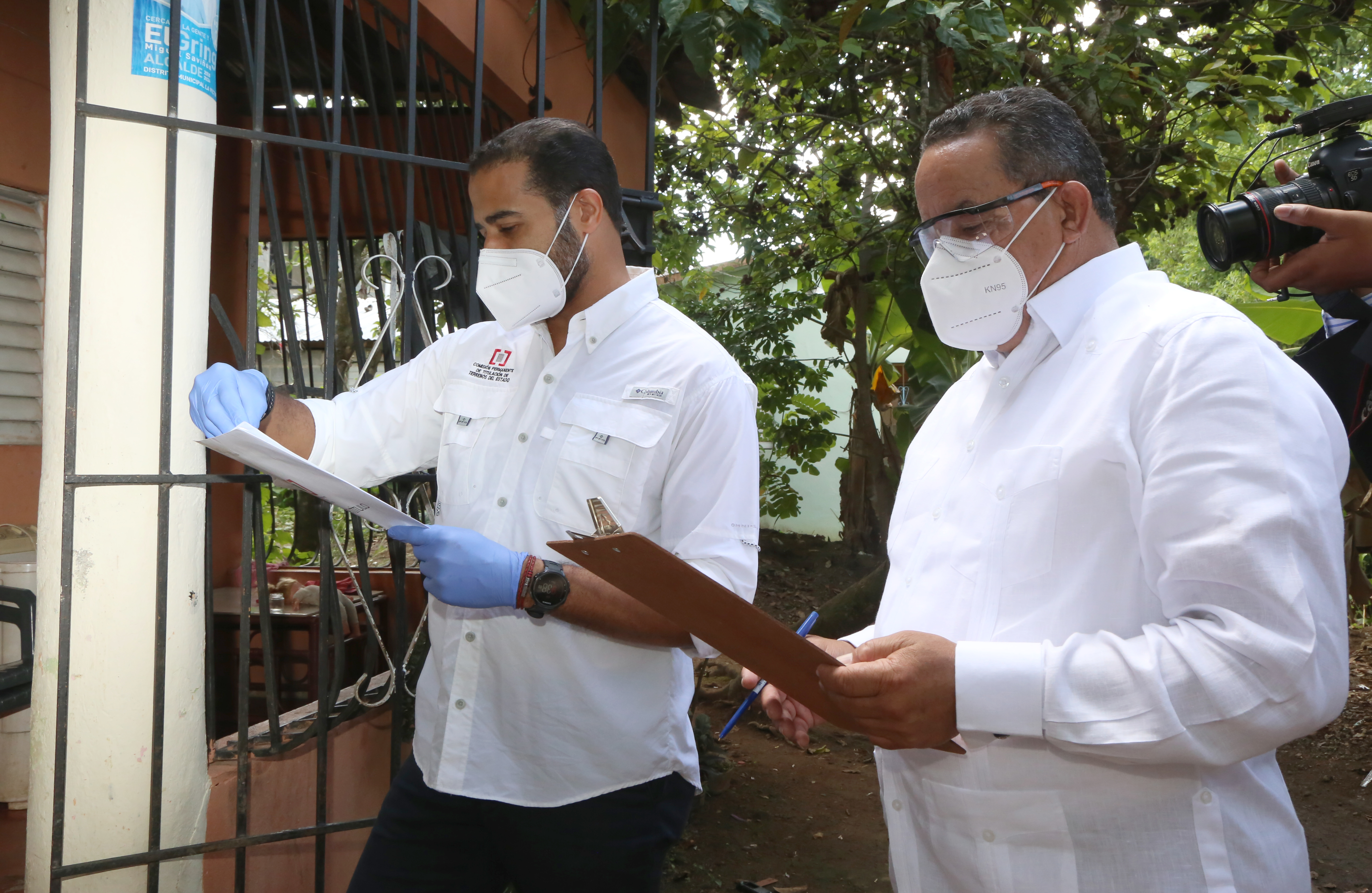 Los directores de la Comisión Permanente de Titulación de Terrenos del Estado (CPTTE), José Dantés Díaz y del Instituto Agrario Dominicano (IAD), Emilio Torio Olivo, durante la entrega.