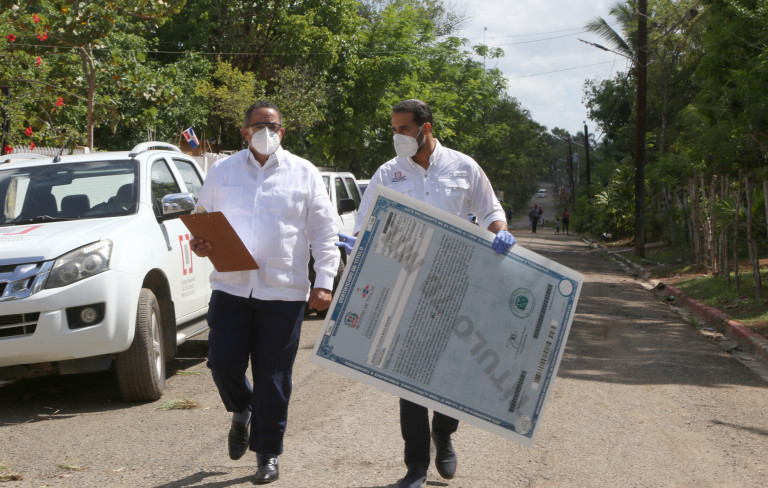 Los directores de la Comisión Permanente de Titulación de Terrenos del Estado (CPTTE), José Dantés Díaz y del Instituto Agrario Dominicano (IAD), Emilio Torio Olivo, fueron casa por casa, bajo el protocolo que dispone el Ministerio de Salud Pública en medio de la situación sanitaria que vive el país por el coronavirus (COVID-19).