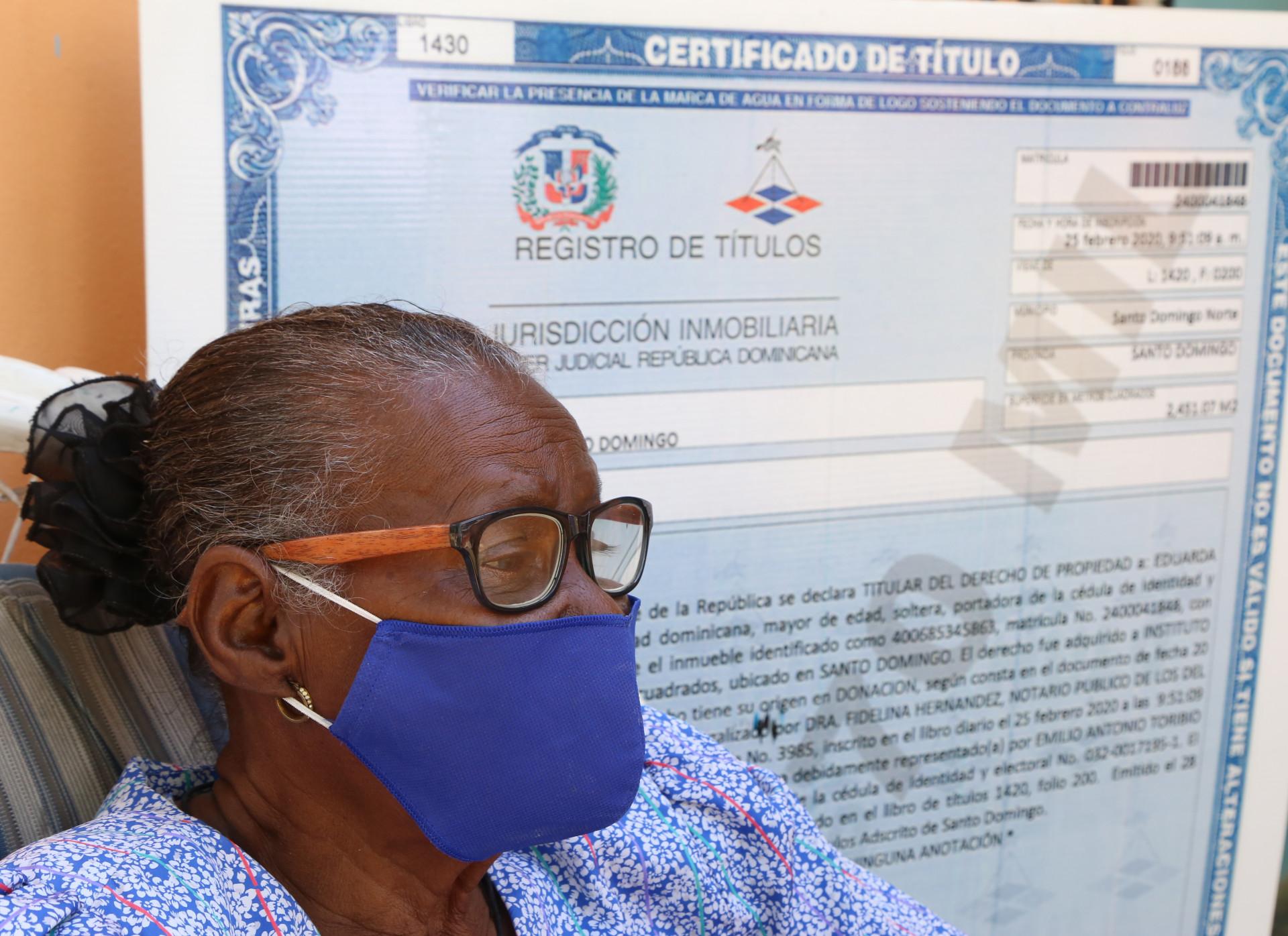 Gobierno de Danilo Medina entrega título de propiedad número 70 mil a mujer, de 81 años, residente en Hacienda Estrella, Santo Domingo Norte