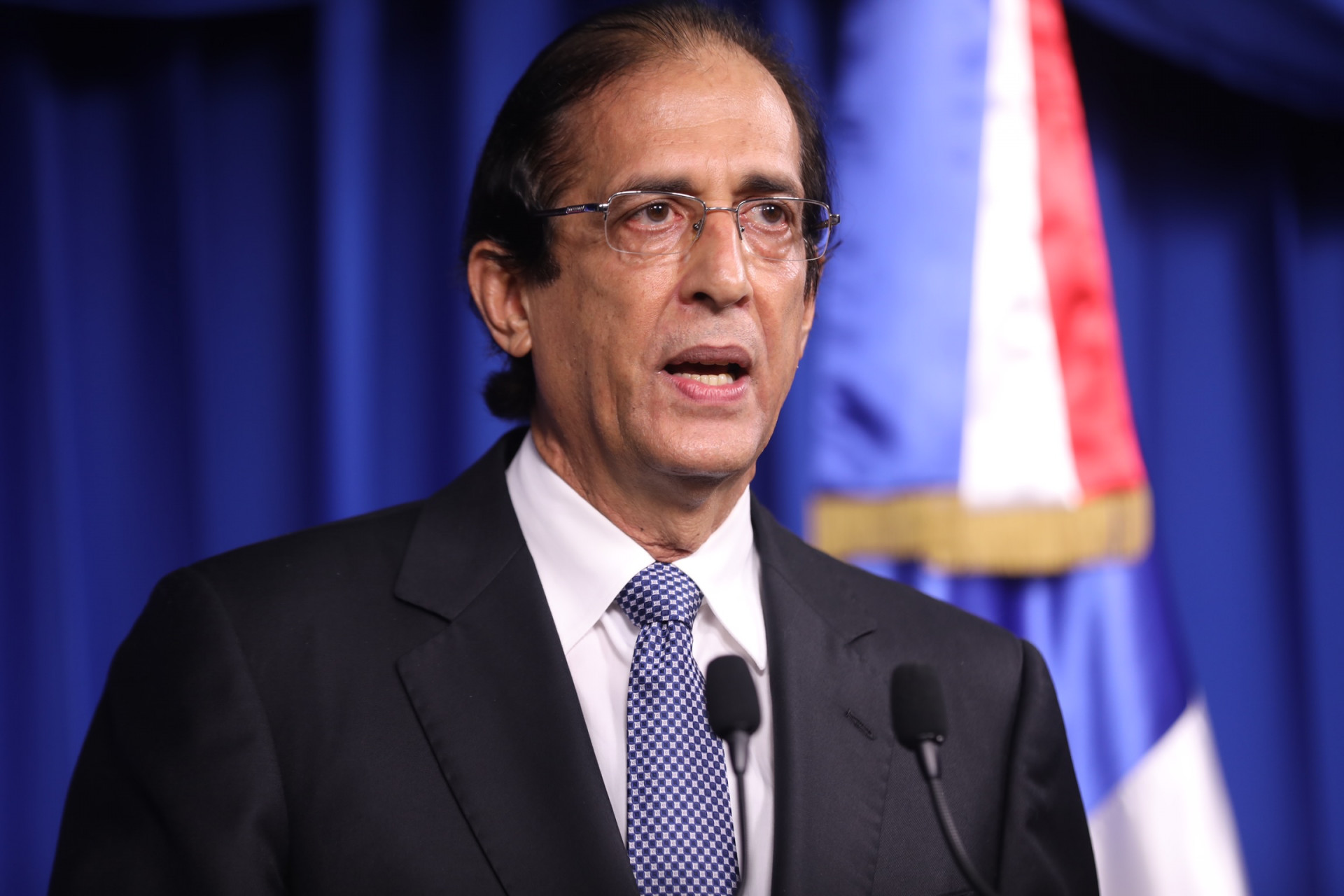 Ministro de la Presidencia, Gustavo Montalvo, en su calidad de coordinador de la Comisión de Alto Nivel para la Prevención y el Control del Coronavirus (COVID-19), durante webconferencia de hoy desde el Salón Orlando Martínez del Palacio Nacional.