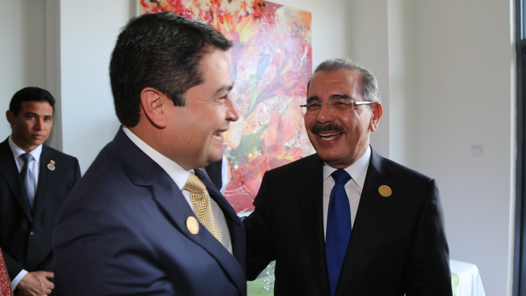 Presidente Danilo Medina comparte con su homólogo hondureño, Juan O. Hernández, presente durante encuentro previo a la toma de posesión del presidente costarricense, Luis Guillermo Solís.