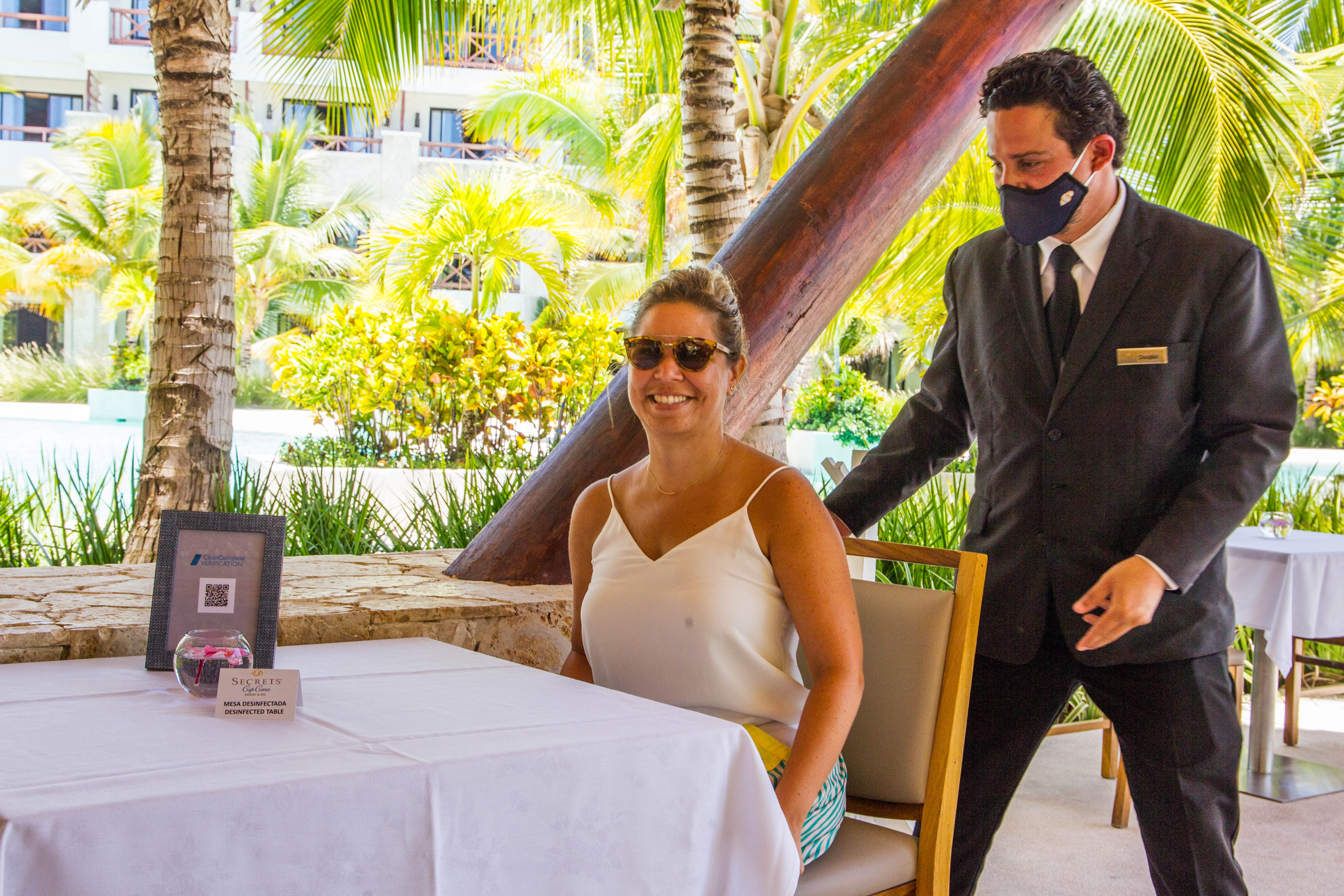 Protocolo estricto de higiene y atención en el restaurant del hotel: luz ultravioleta para desinfectar servilletas y cubertería, distancia de dos metros entre cada mesa, menú digital vía código QR, show cooking, para servir y convertir la ocasión en una alegría memorable.