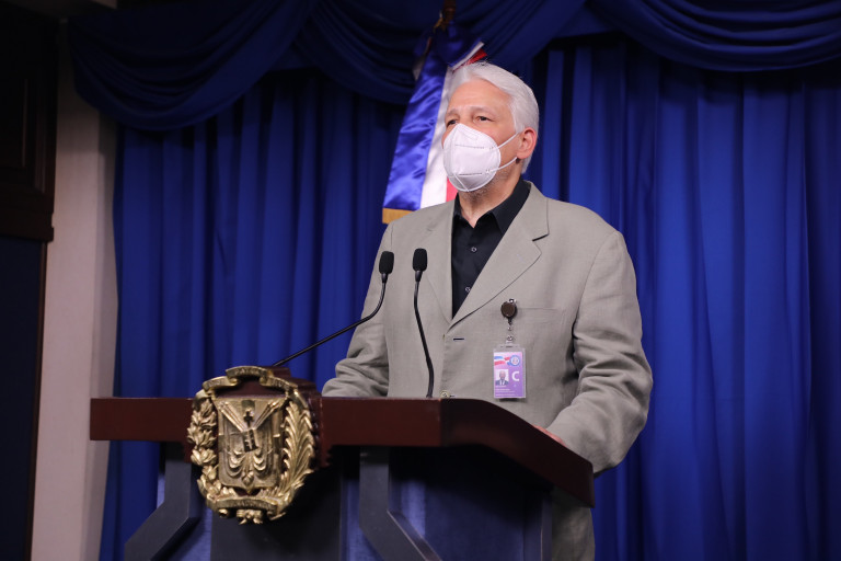 Dr. Jorge Marte Báez, asesor médico del Poder Ejecutivo, durante wedconferencia desde el Palacio Nacional.