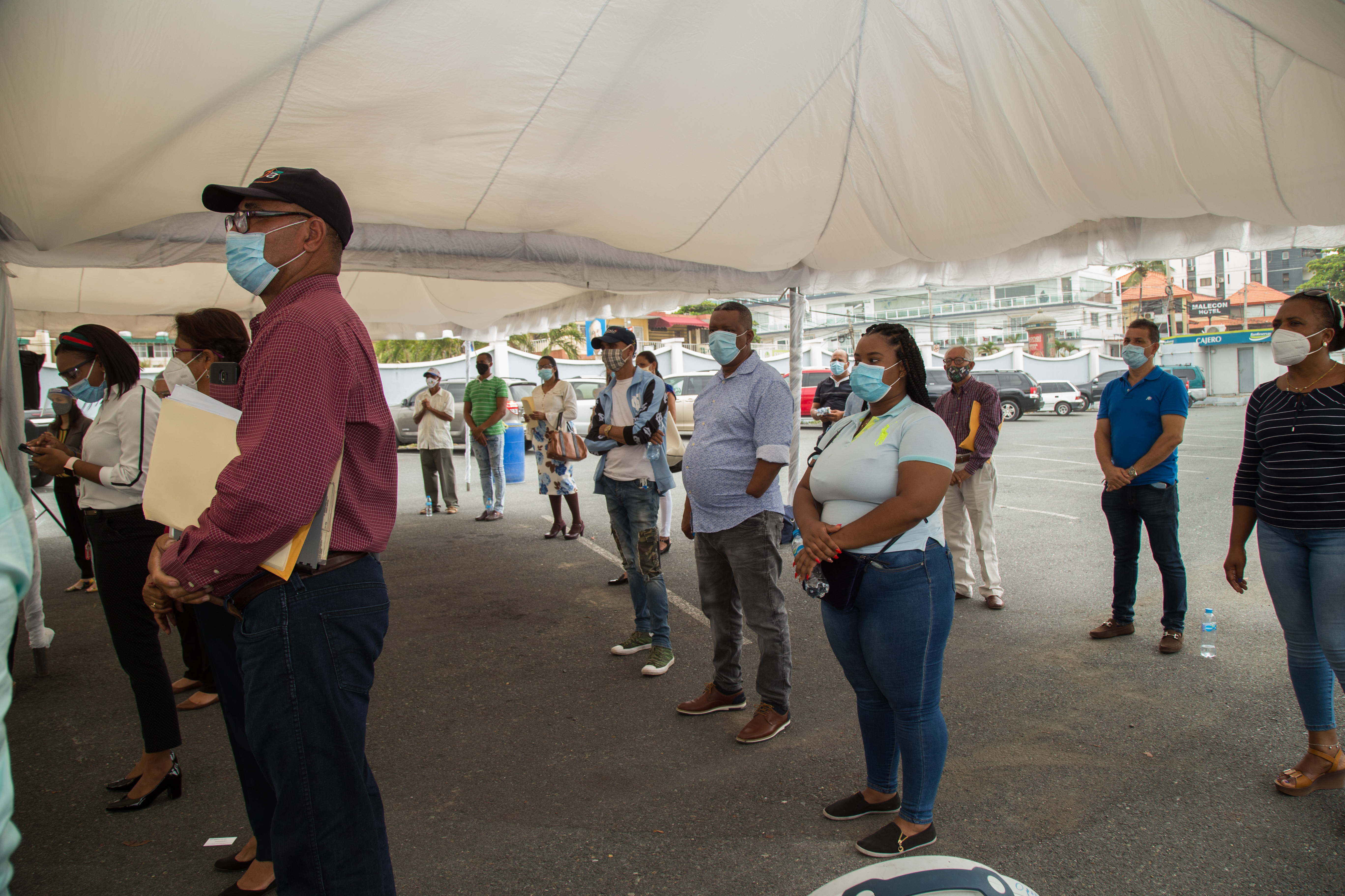 Acto de entrega de computadoras encabezado por el director ejecutivo del FEDA, Juan Francisco Caraballo, y la presidenta ejecutiva de Reservas del País, Rosa Rita Álvarez, realizado en la sede de la institución.