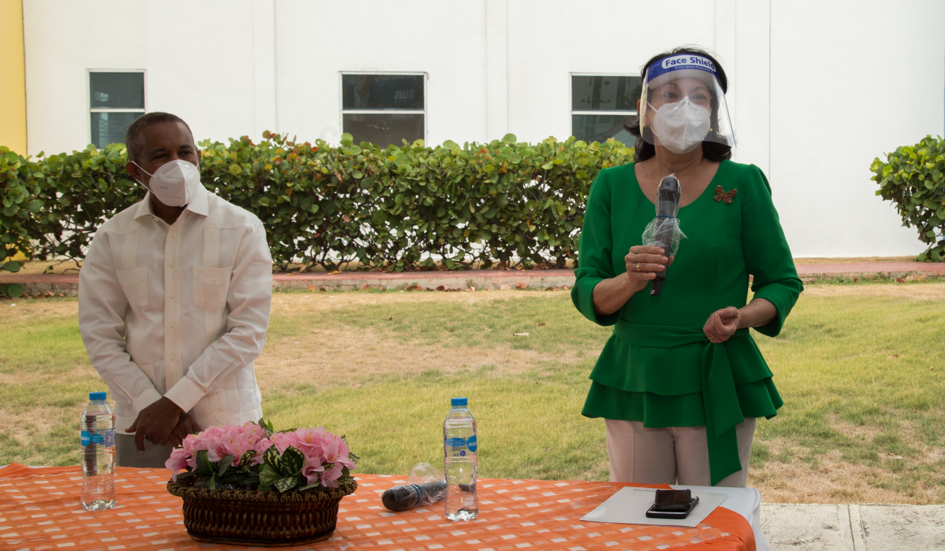 Acto de entrega de computadoras encabezado por el director ejecutivo del FEDA, Juan Francisco Caraballo, y la presidenta ejecutiva de Reservas del País, Rosa Rita Álvarez, realizado en la sede de la institución.