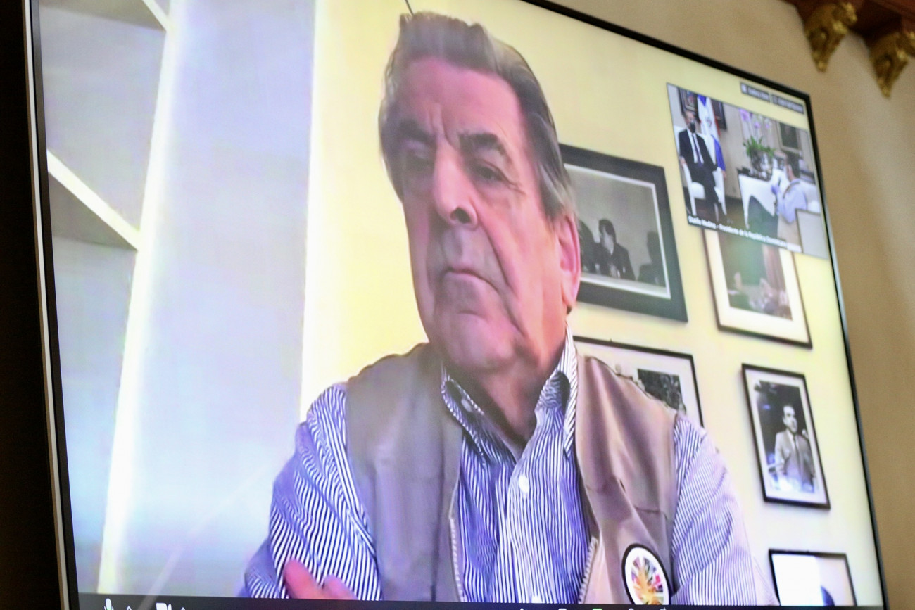 Durante el encuentro se sostuvo una videoconferencia con el expresidente chileno y jefe de la misión, Eduardo Frei Ruiz-Tagle.