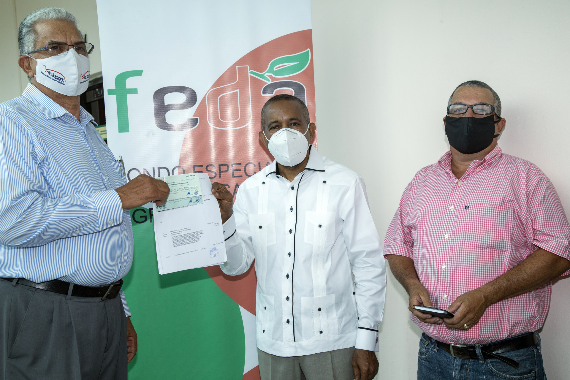 Director ejecutivo del FEDA, Juan Francisco Caraballo, durante la entrega de cheques a representantes de las asociaciones y cooperativas agropecuarias y de pescadores de varias zonas del país; cumpliendo compromisos asumidos por el presidente Danilo Medina en pasadas Visitas Sorpresa.