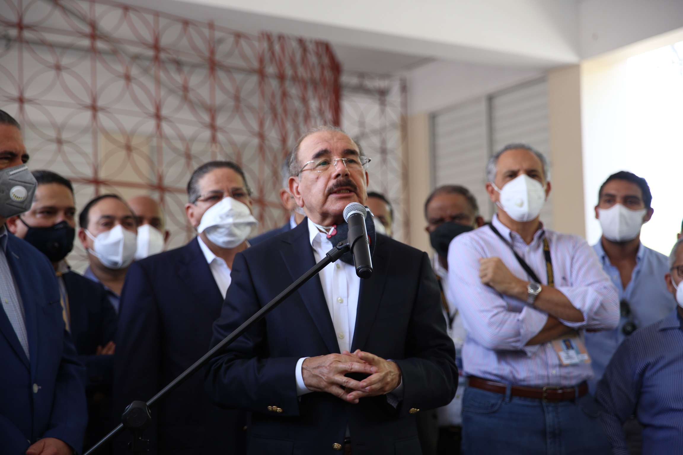 El presidente Danilo Medina al ofrecer declaraciones tras ejercer su derecho al voto en las Elecciones Presidenciales y Congresuales, en la Casa Provincial Hijas de María Auxiliadora del sector Don Bosco, Distrito Nacional.