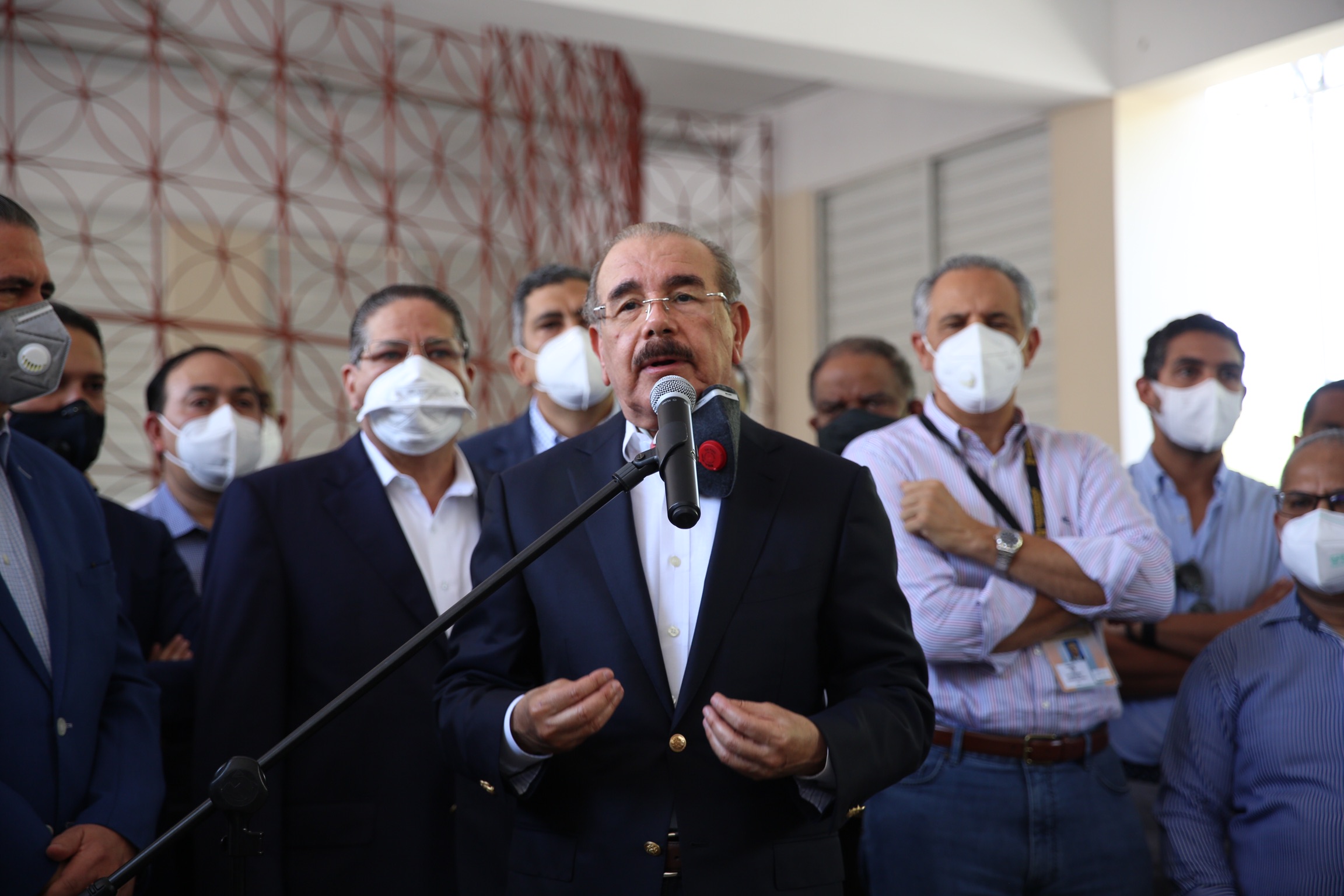 El presidente Danilo Medina al ofrecer declaraciones tras ejercer su derecho al voto en las Elecciones Presidenciales y Congresuales, en la Casa Provincial Hijas de María Auxiliadora del sector Don Bosco, Distrito Nacional.