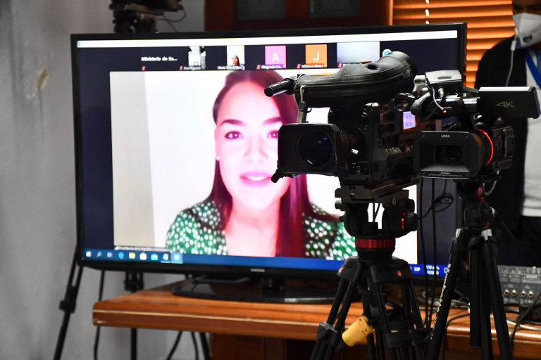 Periodista participante en la webconferencia ofrecida por el ministro de Salud Pública, Rafael Sánchez Cárdenas, quien respondió preguntas sobre actual situación de coronavirus (COVID-19), en nuestro país.