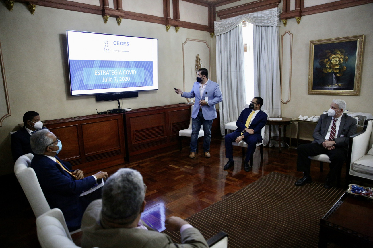 Reunión encabezada por el presidente Danilo Medina con el Comité de Emergencia y Gestión Sanitaria para el Combate del Coronavirus (COVID-19), para dar seguimiento al comportamiento de la pandemia en el país.