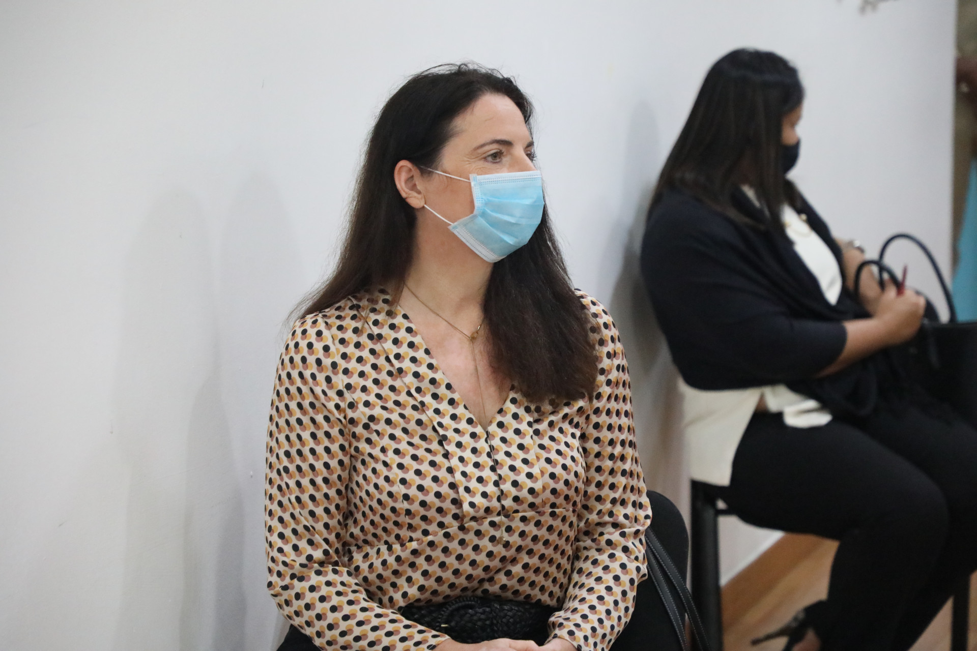 Acto de entrega de la donación encabezado por el ministro de Economía, Planificación y Desarrollo, Juan Ariel Jiménez; el embajador de la Unión Europea, Gianluca Grippa; y Michelle Guzmán en representación de Chanel Rosa Chupany, director ejecutivo del Servicio Nacional de Salud.