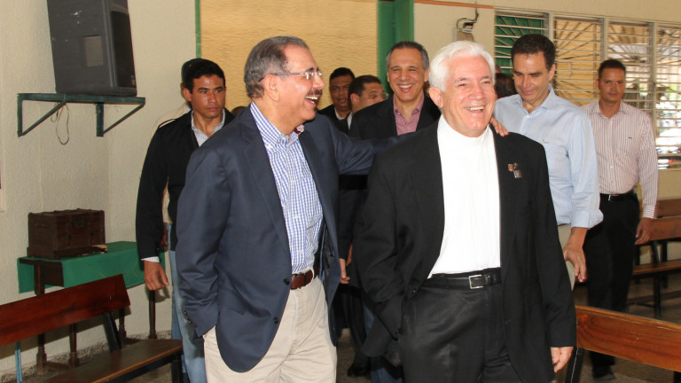 El presidente Danilo Medina en compañía del padre Gregorio Alegría Armendáriz, cura de la parroquia San Vicente de Paúl, quien también se mostró interesado en resolver los problemas de agua potable y de viviendas que enfrentan los moradores de dicha barriada.