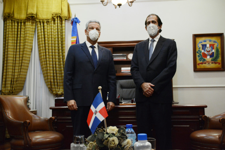 El ministro de la Presidencia, Gustavo Montalvo, en su calidad de presidente de la Comisión de Transición Gubernamental, y Lisandro Macarrulla, designado por el presidente electo, Luís Abinader, se reunieron hoy.