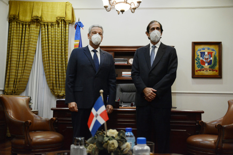 Ministro de la Presidencia, Gustavo Montalvo, en su calidad de presidente de la Comisión de Transición Gubernamental, y Lisandro Macarrulla, coordinador técnico de la comisión de transición por el PRM, durante primer encuentro para el proceso de transición en Palacio Nacional.