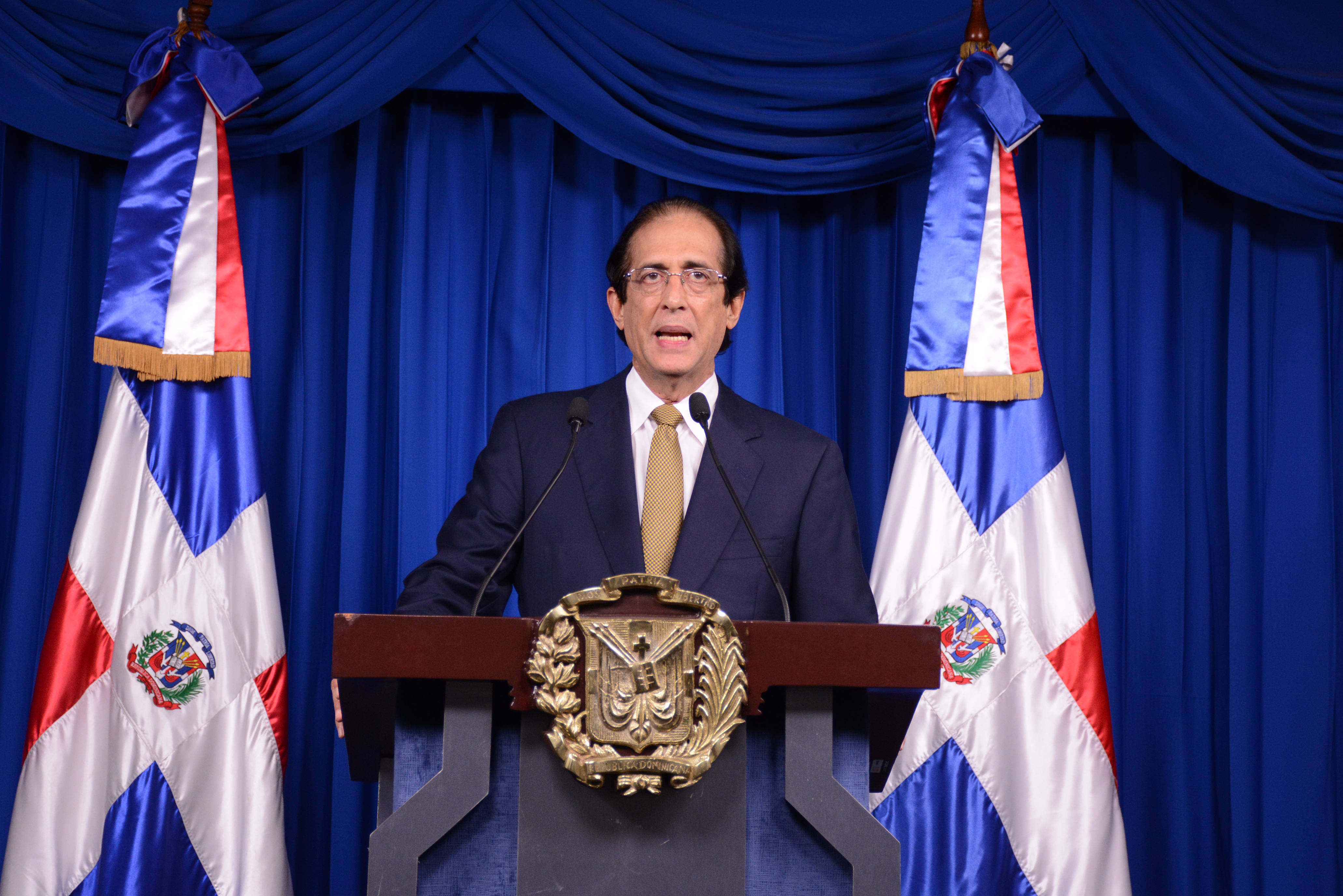 Ministro de la Presidencia, Gustavo Montalvo, en su calidad de coordinador de la Comisión de Alto Nivel para la Prevención y el Control del Coronavirus (COVID-19), durante el anuncio desde el Palacio Nacional.
