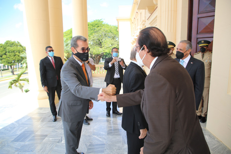 El expresidente Hipólito Mejía estuvo acompañado del designado por el presidente electo Luis Abinader, ministro de Defensa, mayor general Carlos Luciano Díaz Morfa y por el coronel retirado Pedro Julio Guerrero (Pepe).