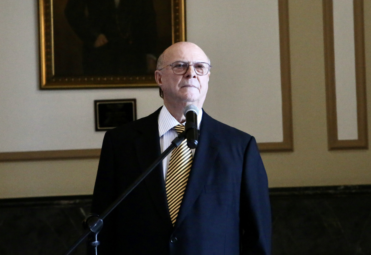 Hipólito Mejía, quien habló con los periodistas al salir de su encuentro con Danilo Medina.