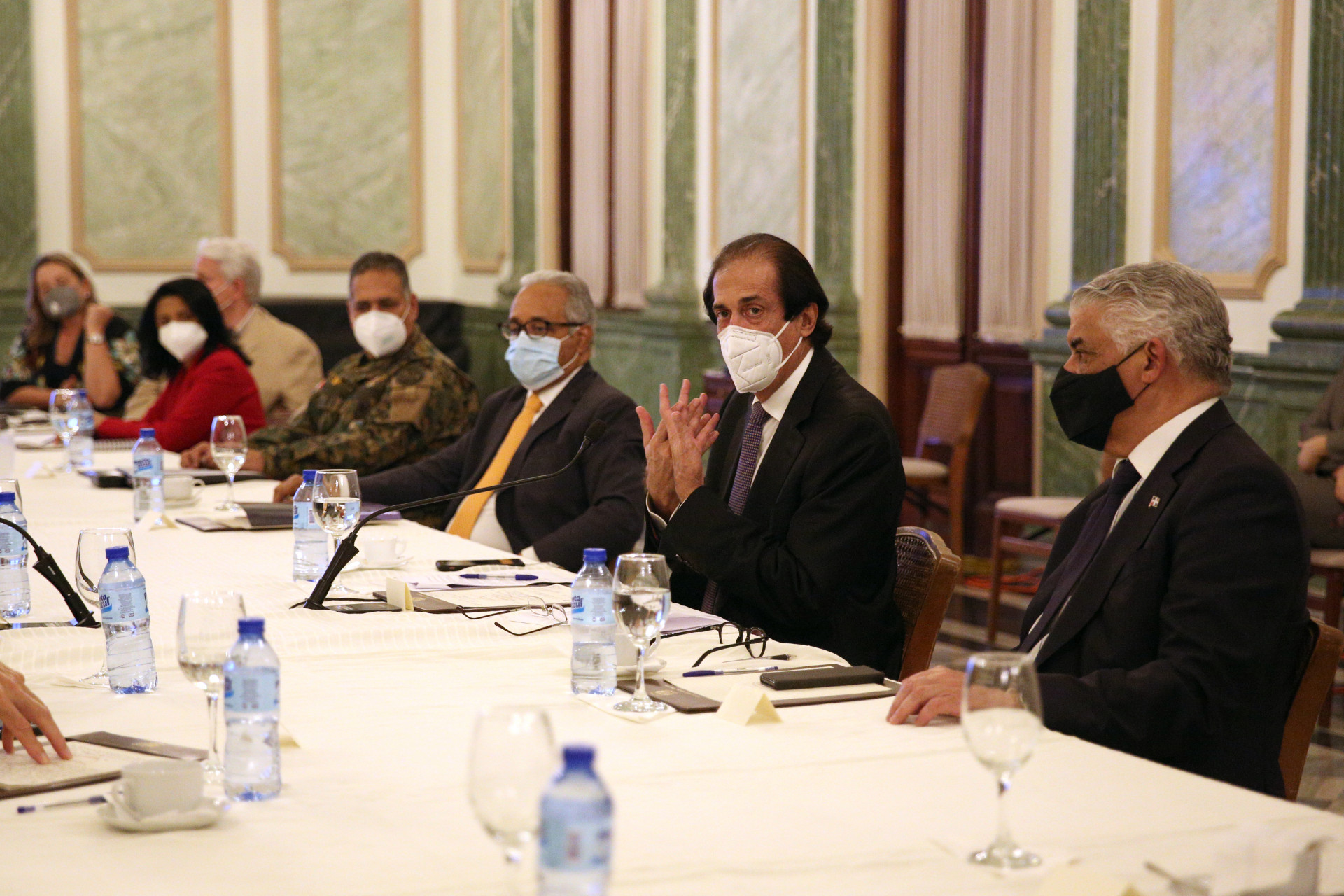 Reunión de trabajo encabezada por el ministro de la Presidencia, Gustavo Montalvo, con los integrantes de los equipos de salud designados por el presidente Danilo Medina, y el presidente electo, Luis Abinader, en el Palacio Nacional.
