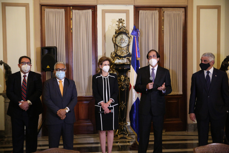 Junto al ministro Montalvo, a la reunión asistieron el ministro de Salud Pública, Rafael Sánchez Cárdenas; el ministro de Economía, Juan Ariel Jiménez; el ministro de Relaciones Exteriores, Miguel Vargas; el director del Centro de Operaciones de Emergencia, Juan Manuel Méndez García; la subdirectora del Servicio Nacional de Salud, Noldis Naut; y los asesores de salud Amado Alejandro Báez, Patricia Leon y Jorge Marte.