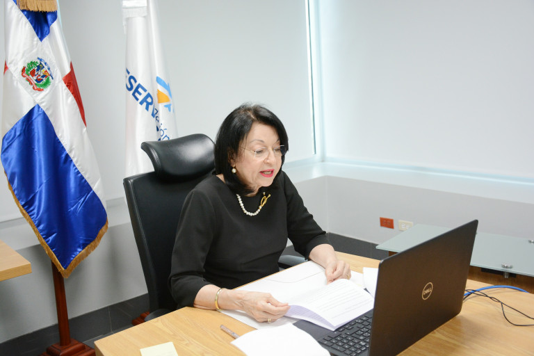 Presidenta ejecutiva de la Fundación Reservas del País, Rosa Rita Álvarez, durante lanzamiento del programa Crédito Verde de la Fundación Reservas del País con el apoyo del Banco Interamericano de Desarrollo (BID); realizado hoy a través de la plataforma Zoom.