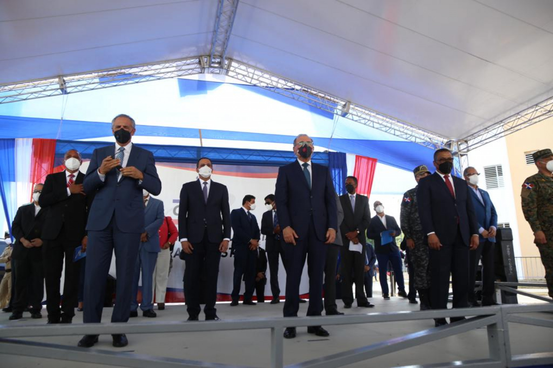 El presidente Danilo Medina estuvo acompañado del teniente general ERD, Rubén Darío Paulino Sem, ministro de Defensa; Donald Guerrero, ministro de Hacienda; Antonio Peña Mirabal, ministro de Educación y el mayor general Ney Aldrin Bautista Almonte, director general de la Policía Nacional.