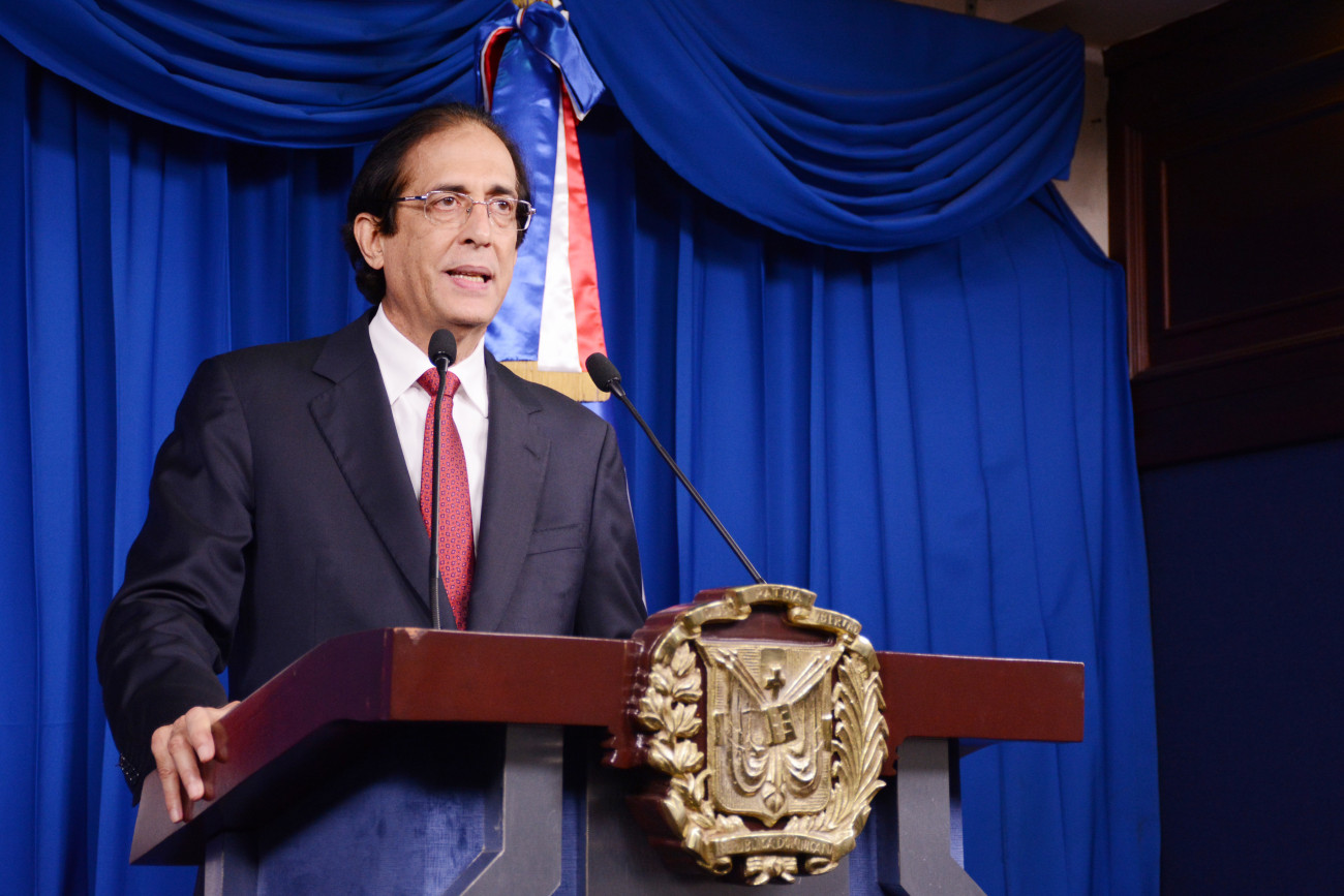 Ministro de la Presidencia, Gustavo Montalvo, en su condición de coordinador de la Comisión de Alto Nivel para la Prevención y Control del Coronavirus (COVID-19), durante webconferencia de hoy desde el Palacio Nacional.
