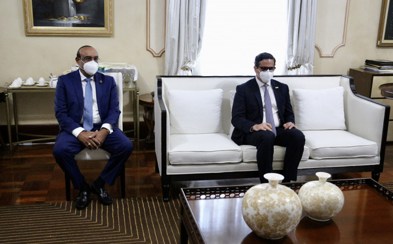 Directivos del Consejo Nacional de la Empresa Privada (CONEP), encabezados por su presidente, Pedro Brache, en el Salón Privado del Palacio Nacional.