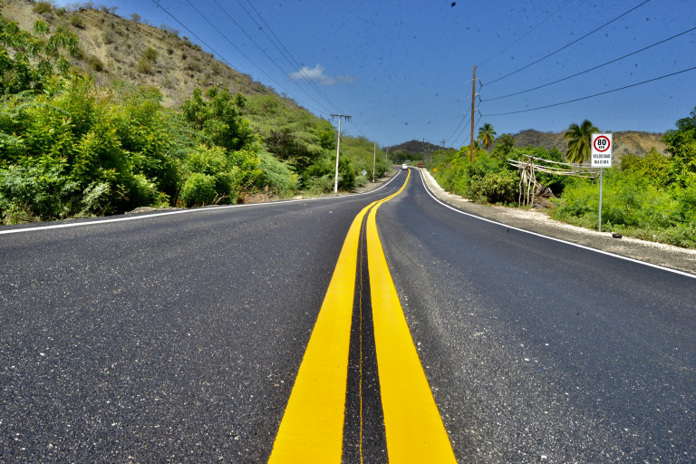 Vista de la reconstruida y ampliada carretera Azua - Barahona, con una longitud de 72 kilómetros, inaugurada hoy en acto encabezado por el presidente Danilo Medina.