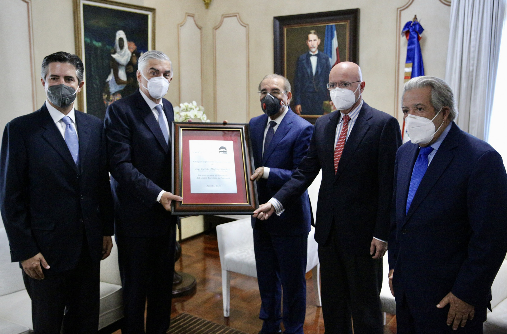 La distinción fue entregada al jefe de Estado, en el Salón Privado del Palacio Nacional, por Rafael Blanco, Federico Schad, Juan Balancari, Jesús Durán y Julio Llibre.