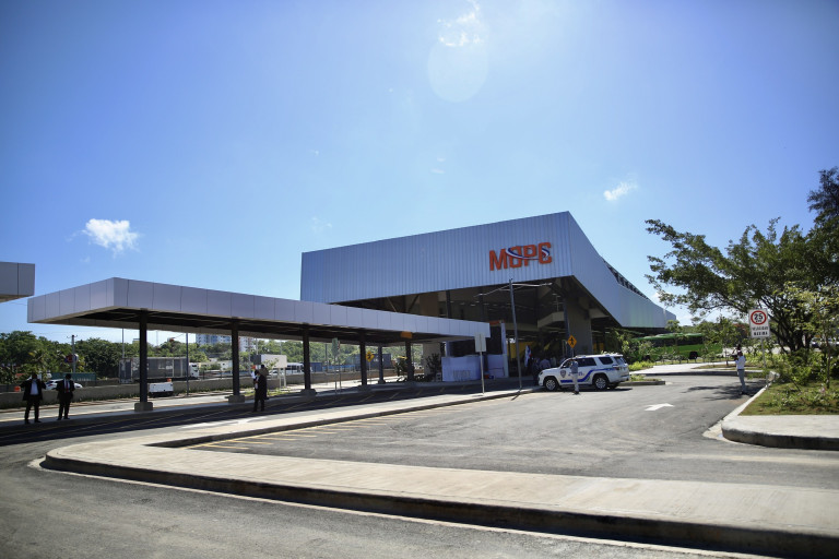 Vista exterior de la Terminal Interregional de Autobuses Santo Domingo Este, entregada hoy en acto encabezado por el presidente Danilo Medina.