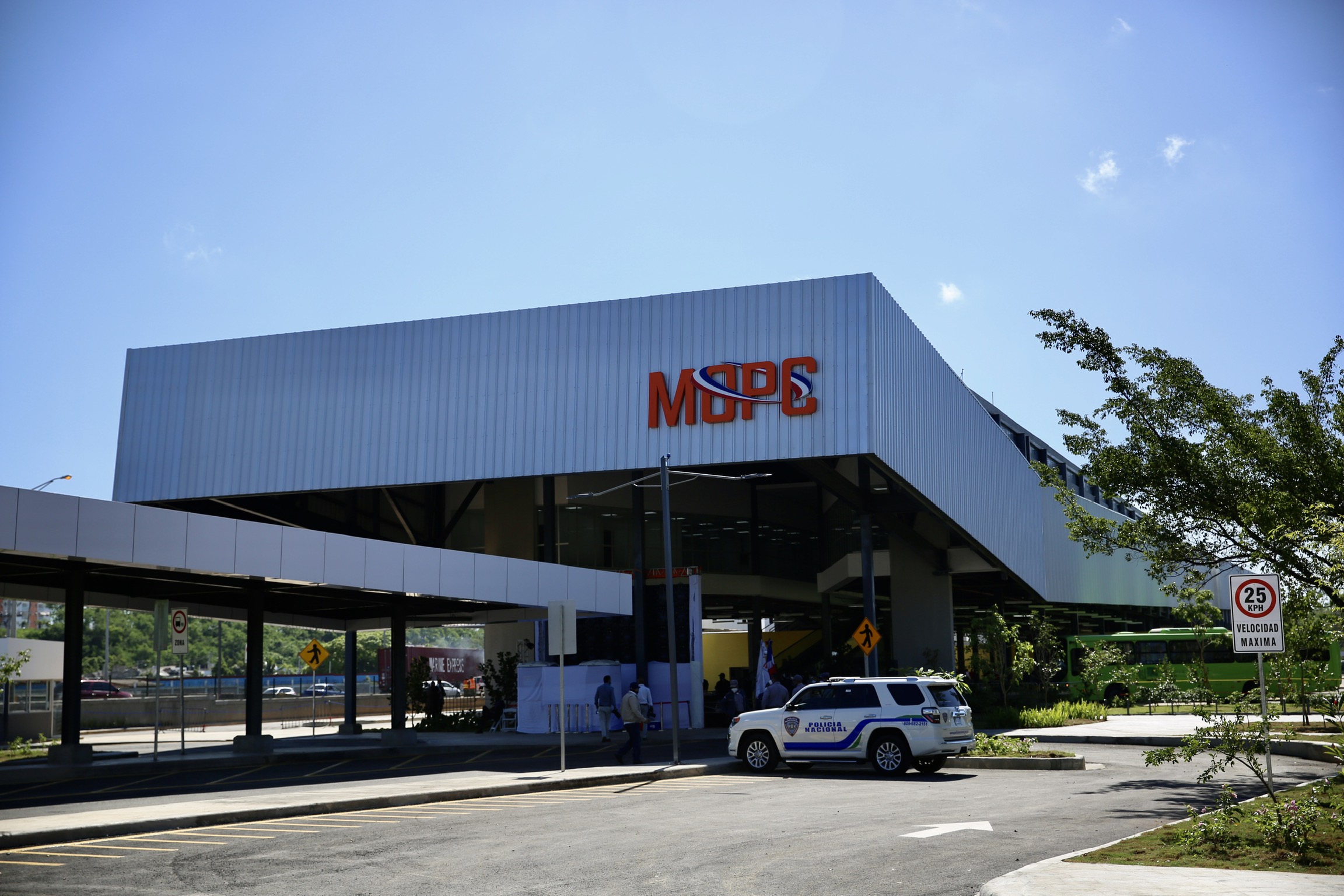 Vista exterior de la Terminal Interregional de Autobuses Santo Domingo Este, entregada hoy en acto encabezado por el presidente Danilo Medina.