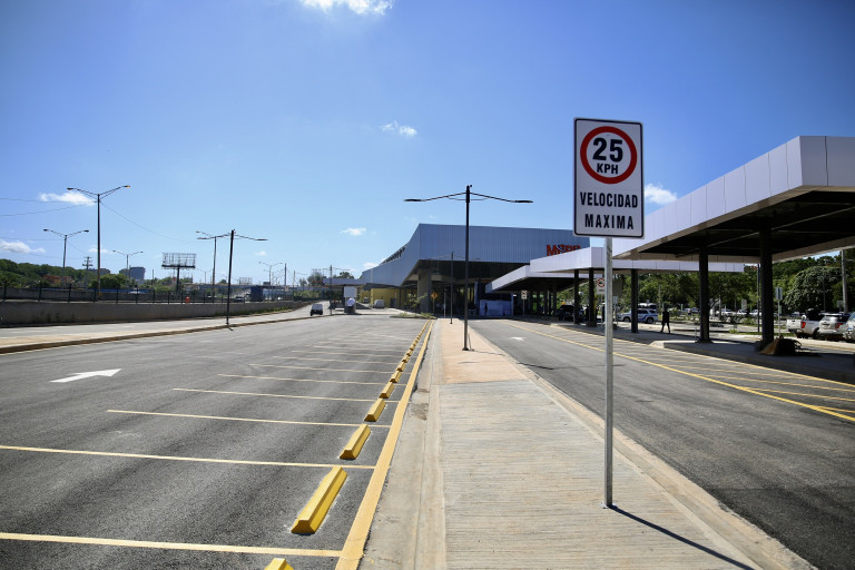 Vista exterior de la Terminal Interregional de Autobuses Santo Domingo Este, entregada hoy en acto encabezado por el presidente Danilo Medina.