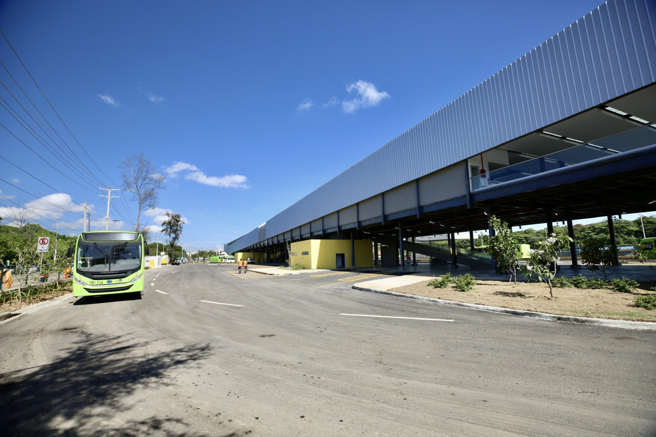 Vista exterior de la Terminal Interregional de Autobuses Santo Domingo Este, entregada hoy en acto encabezado por el presidente Danilo Medina.